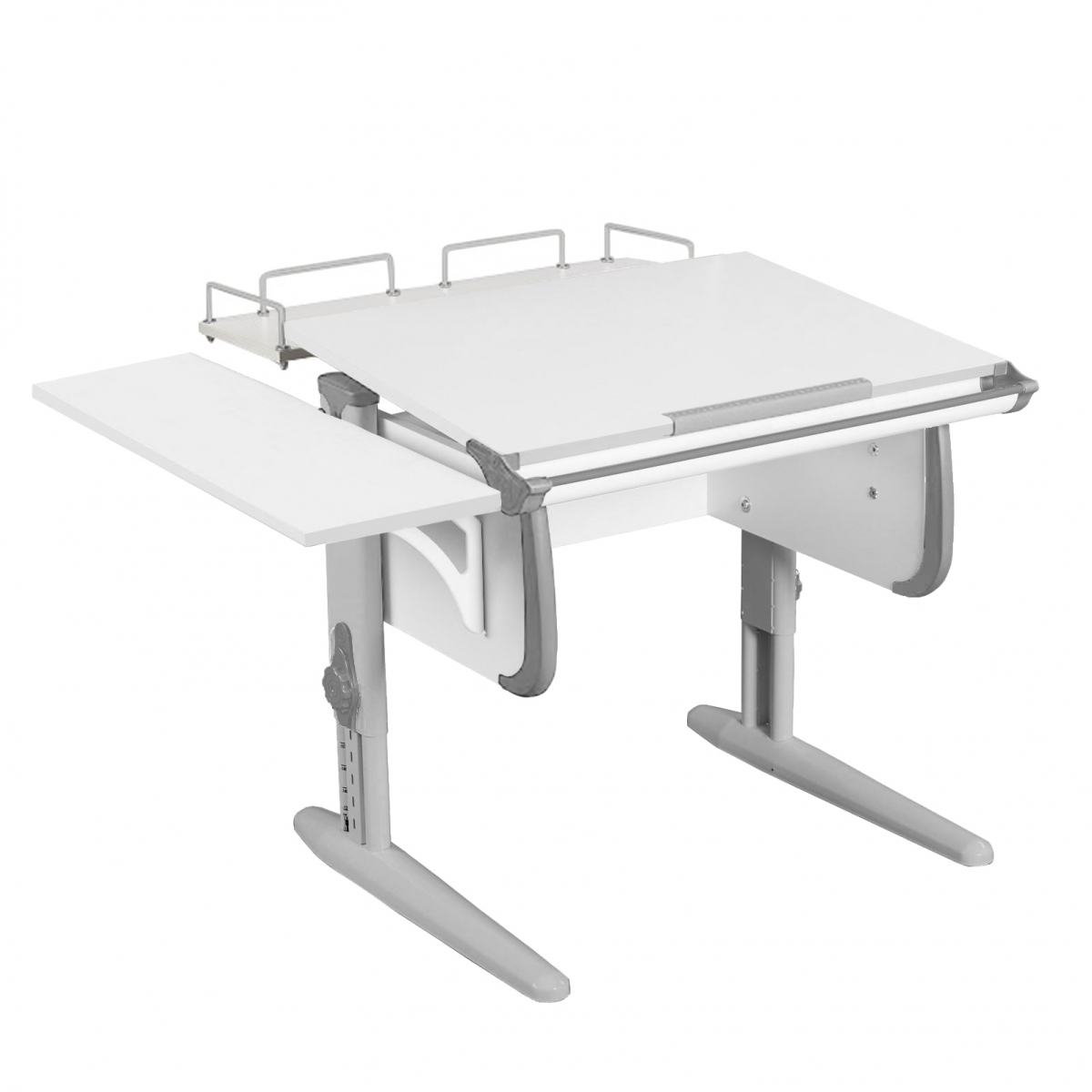 Очень легко можно регулировать угол наклона столешницы. С помощью немецкого механизма Shatti она устанавливается до угла в 26 градусов. Детская парта Дэми СУТ-24-02 обеспечивает нужное положение, чем разгружает шейные позвонки и сам позвоночник. Правильный угол позволяет держать голову прямо, не нагибаясь. Обычно, такой угол наклона устанавливают для чтения и письма, а для рисования необходим наклон всего в 5 градусов.